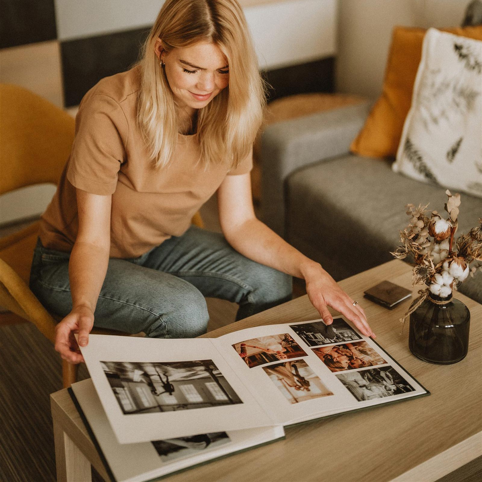 "Fotoalbum je pro mě návratem ke klidu a harmonii. Je to originální produkt, na který si každý najde potřebný čas, zapálí si oheń v krbu a vyrovná fotky na stůl. Jakmile si promyslí jejich pořadí, začne ten krásný okamžik lepení a vyměřování přesných okrajů. Po dokončení celého procesu jsme odměněni elegantní jednoduchostí alba, které je skutečně osobní výpovědí jejího autora."