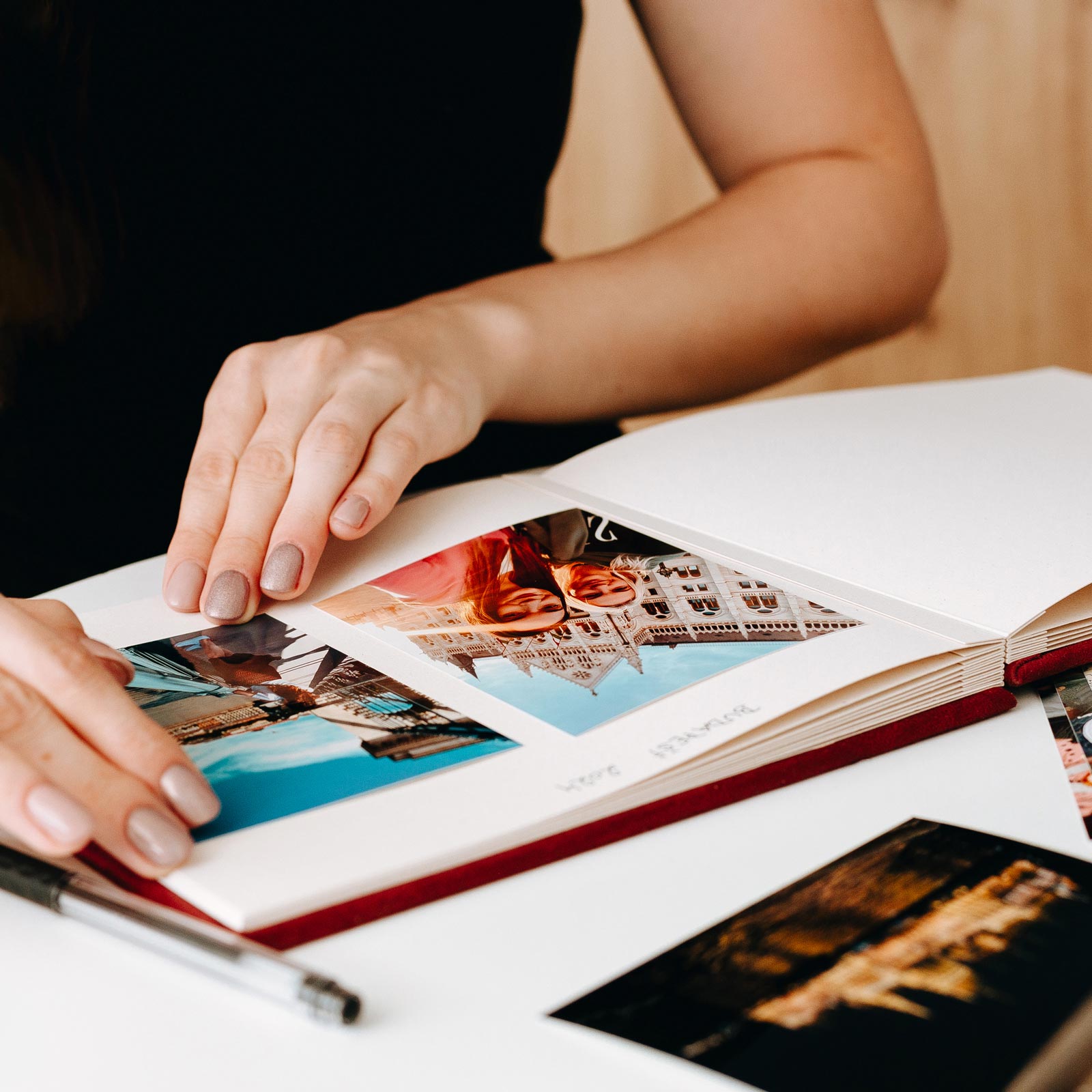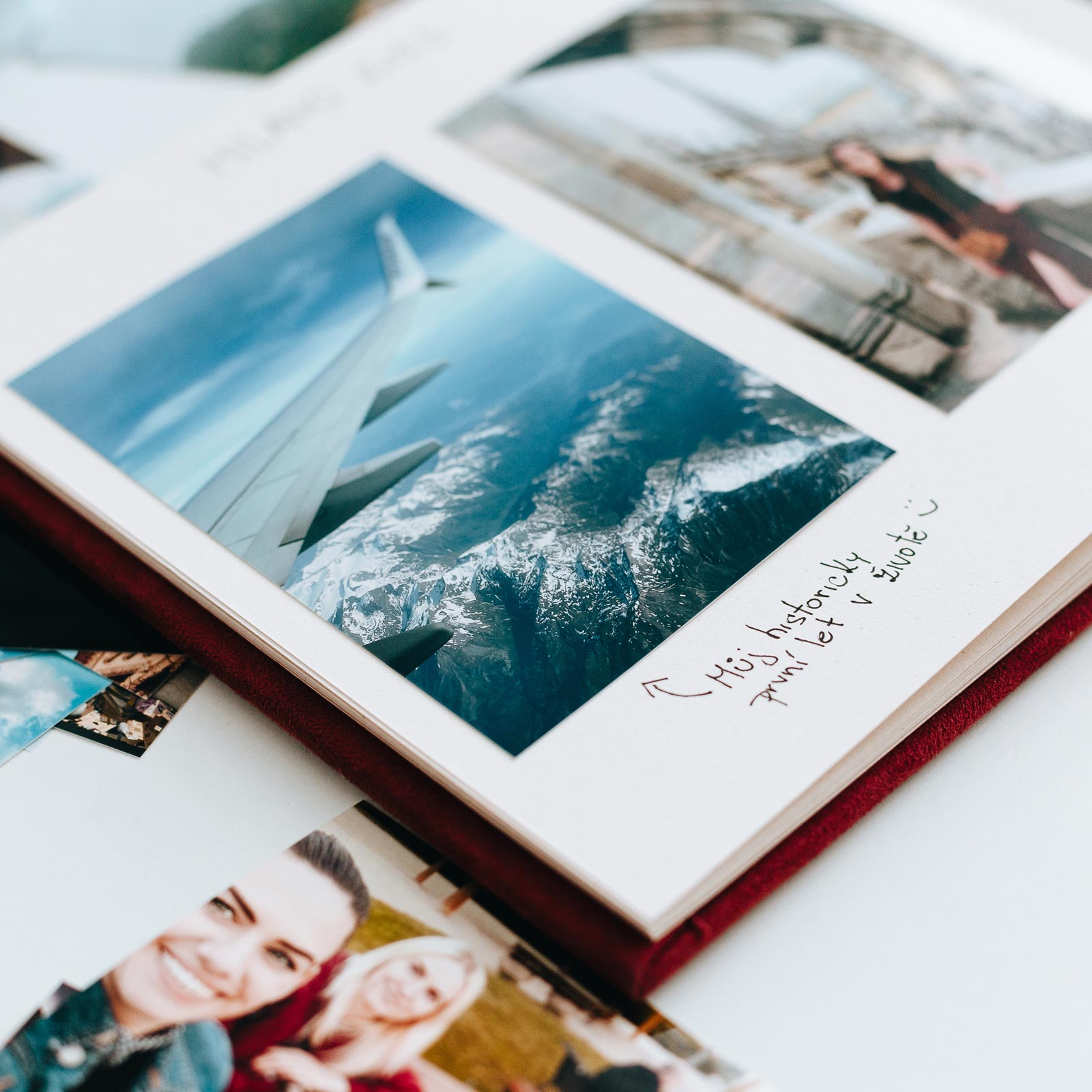 Album může krásně ladit s fotoknihou ze stejného materiálu – a posloužit třeba jako svatební kniha hostů nebo doplněk pro polaroidy.