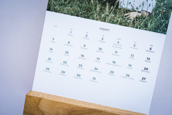 Výroba probíhá pomocí digitálního tisku na pevný fotopapír. Má měsíční kalendárium a decentní stojánek z masivního dubu.